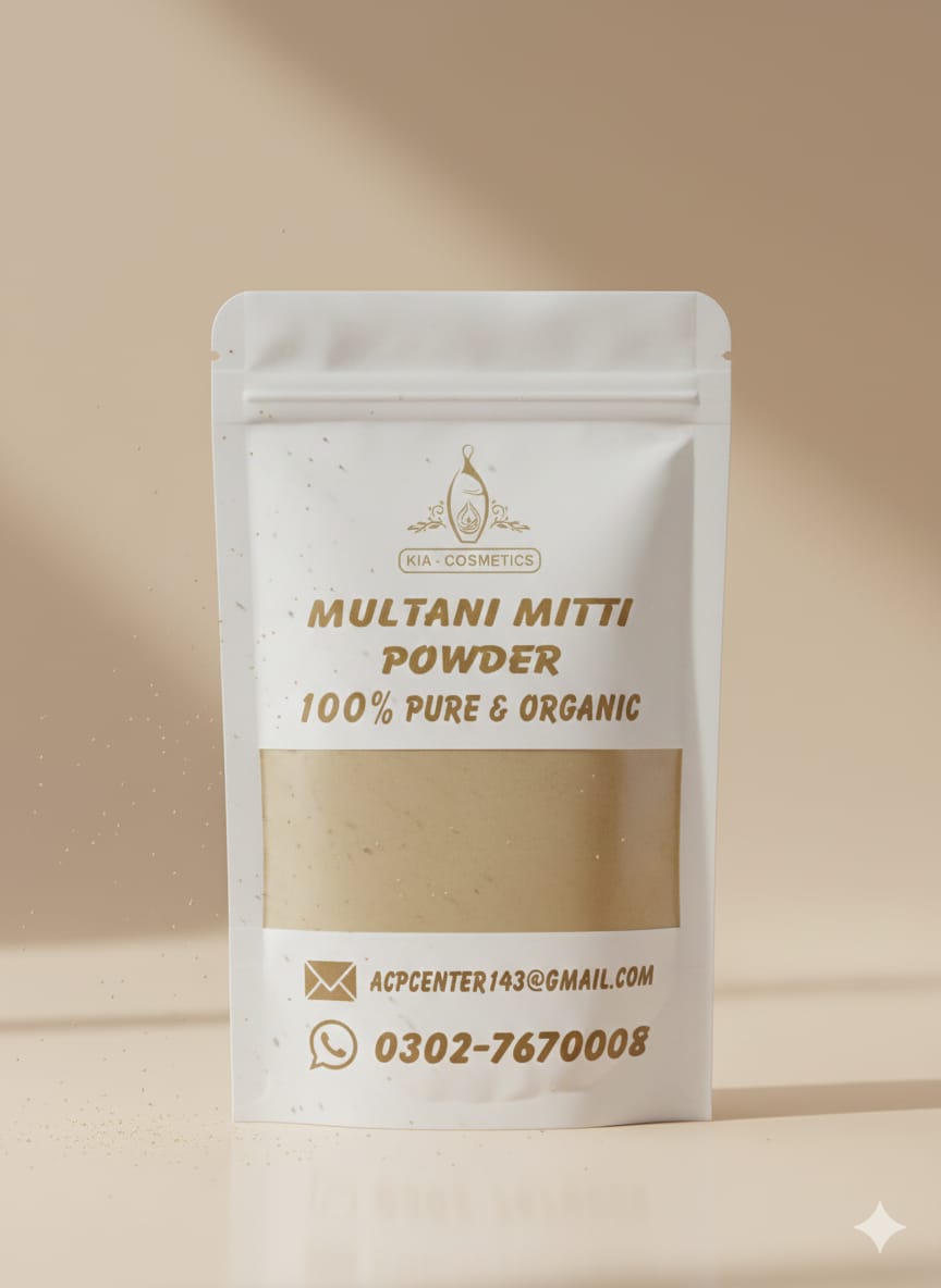 Multani Mitti is a 100% pure and organic clay powder that deeply cleanses the skin, removes excess oil, clears acne, and tightens pores. This natural clay refreshes dull skin and restores a healthy glow. Suitable for all skin types, it leaves your face soft, smooth, and visibly brighter after every use.